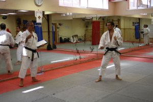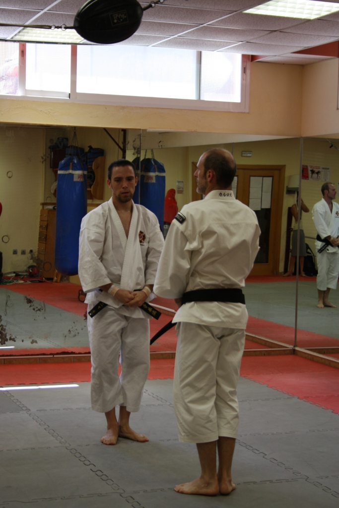 Nuestros examinadores fueron Okabe Sensei (Morioka Doin) y Utsunomiya Sensei (Ehime Uwa Doin). Disfrutamos de un exquisito trato por su parte. Fue una lástima que al final del examen no dispusieran de más tiempo, pues al término del mismo no dudaron en compartir su conocimiento aportándonos valiosos detalles técnicos en apenas unos minutos.